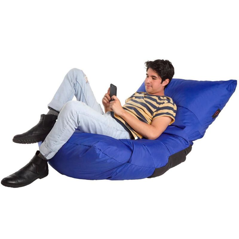 Puff para Interior y Exterior. Funda de Tela Poliéster Azul Rey Impermeable y Relleno de Microperlas de Poliestireno