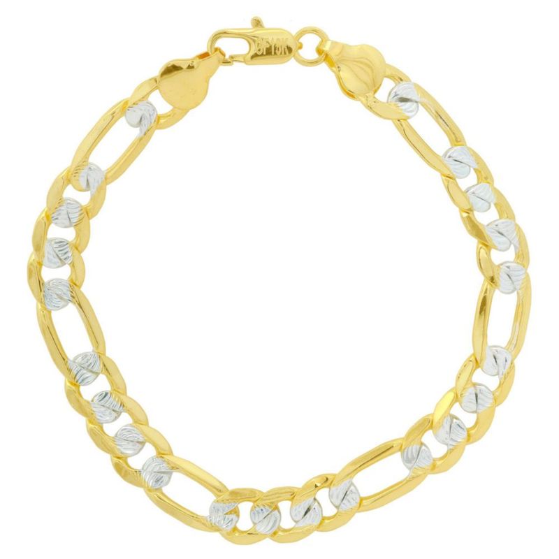 Moda y accesoriosJoyeríaPulserasPulsera caballero 3x1 Fígaro Bicolor 9mm x 22cm Horoz Chapa de oro 18K EH133