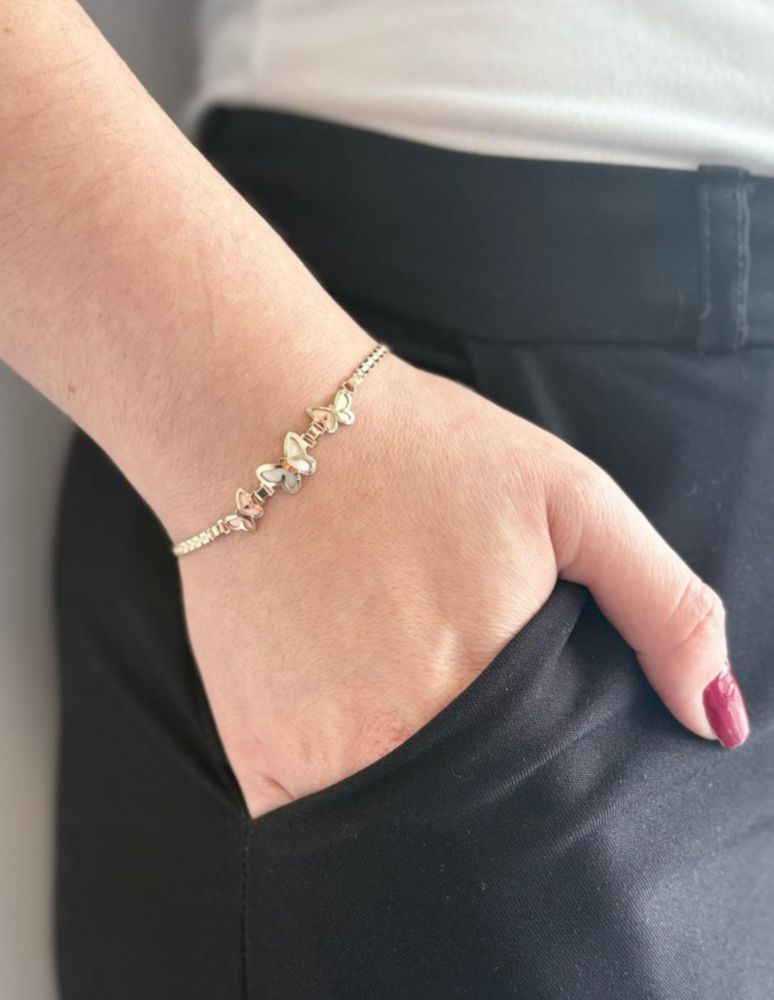 Pulsera Dama Mariposas Oro Florentino 14k CRISTAL JOYAS ITAITAPU-323