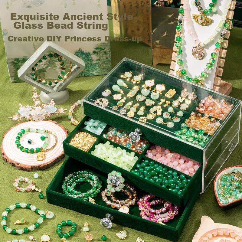 Bebés y juguetesJuguetesJuguetes para NiñasPulsera de cuentas de vidrio HUANGEN 1 pieza verde para niñas