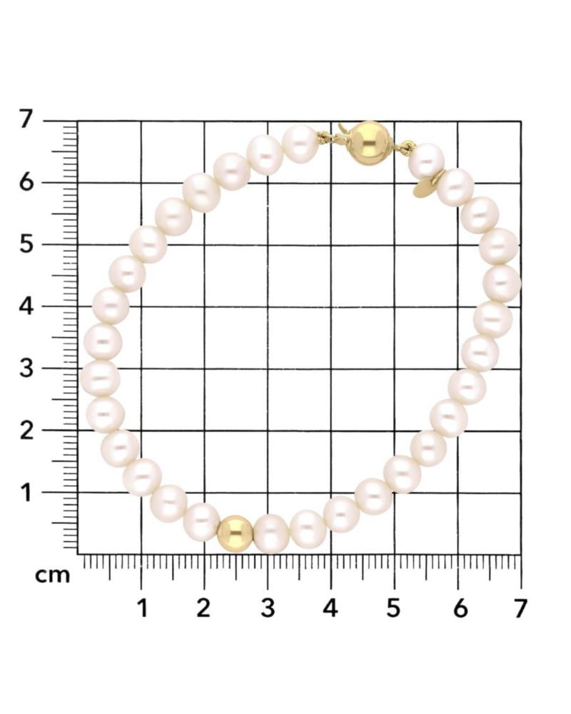 PULSERA DE PERLAS BLANCAS Y ORO AMARILLO 14K (19.5CM)