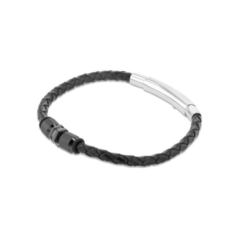 PULSERA DE PIEL COLOR NEGRO CON CUENTAS DE ACERO INOXIDABLE