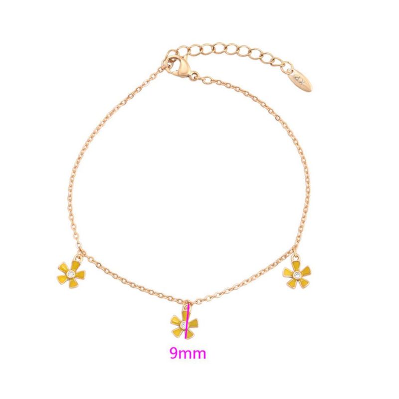 Pulsera Flores Amarillas Amistad Cristales Oro 18K Laminado Dorado