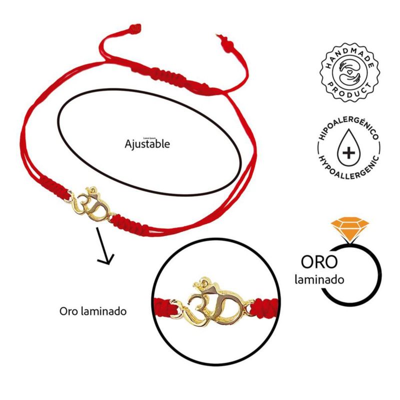 Moda y accesoriosJoyeríaPulserasVangania pulsera roja mujer con dije Om baño de oro 18k joyería artesanal regalo