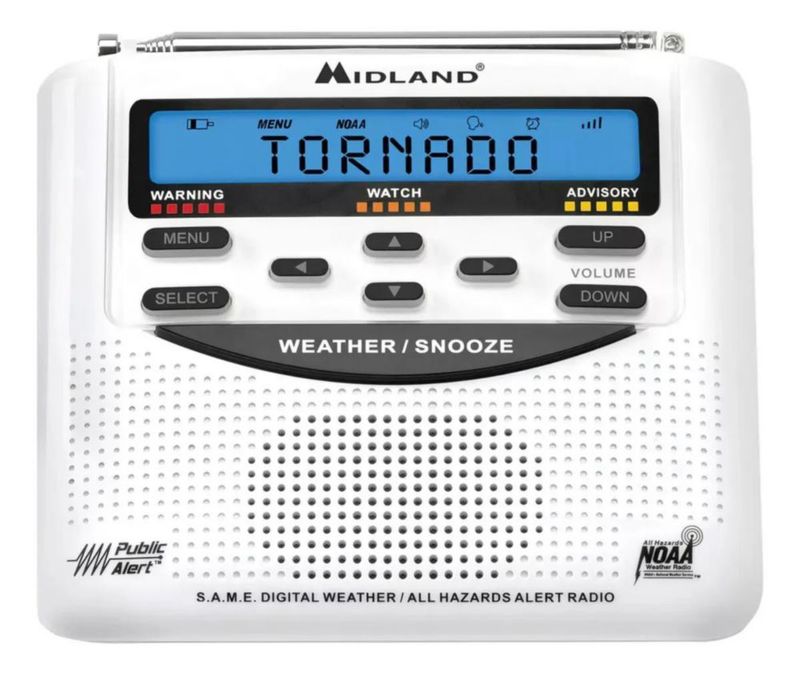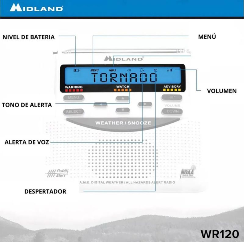 Radio con Alerta Sísmica Midland WR120 funciona con Baterías Alcalinas AA