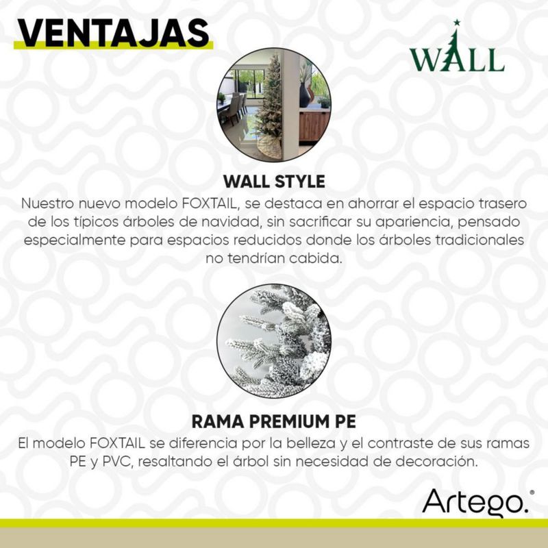 Árbol De Navidad A la mitad para Pared - Medio Árbol de 2.2m alto Nevado Ahorra Espacio Modelo Foxtail Premium con 1250 ramas PE/PVC Pino Navideño