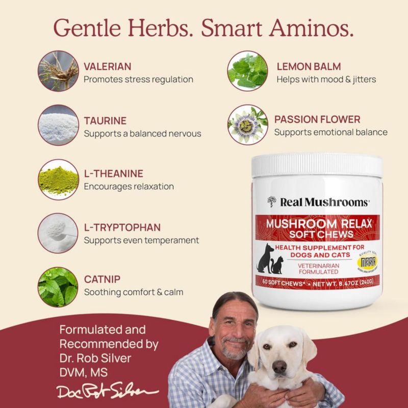 Real Mushrooms Mushroom Relax Pets Estrés Ansiedad 60 Chews