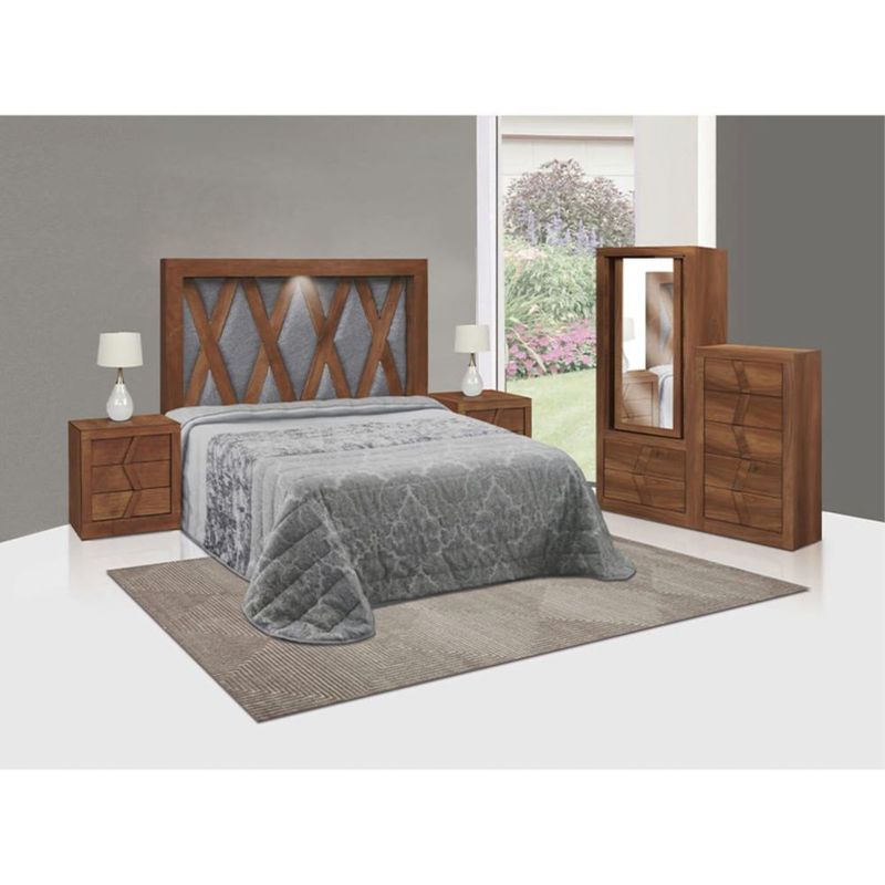 MueblesRecámaraRecámarasRecamara King Size Diamante 5 Piezas Nogal Kessa Muebles