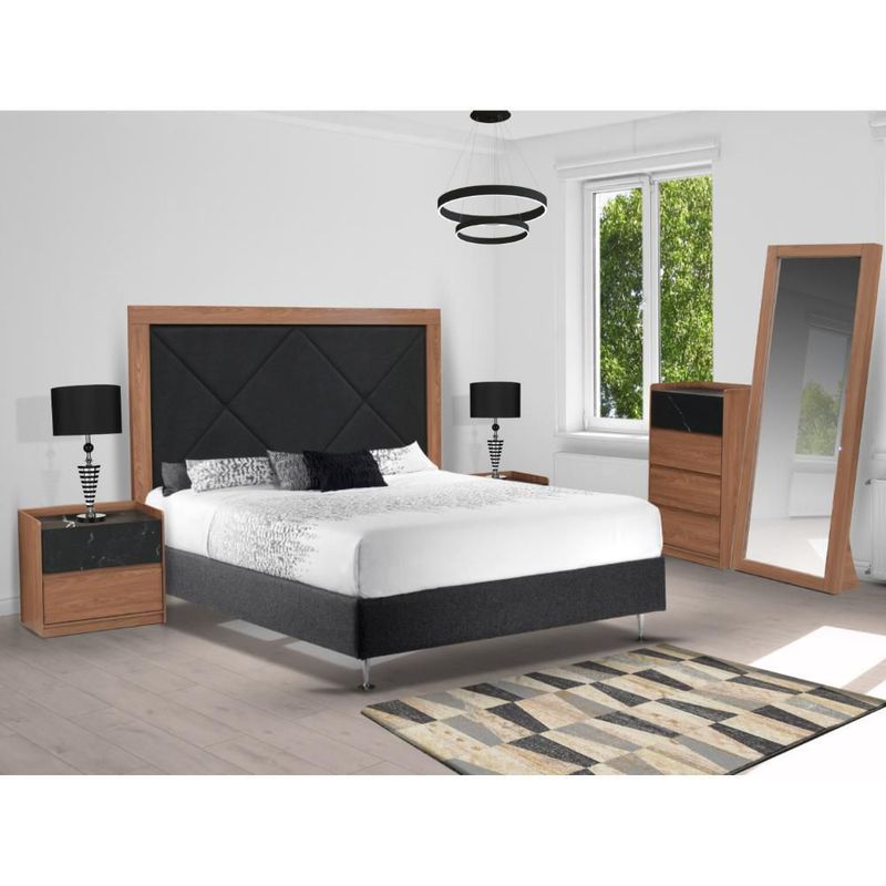 Recamara King Size Hendrix 5 piezas Nogal Café y Marmol Negro