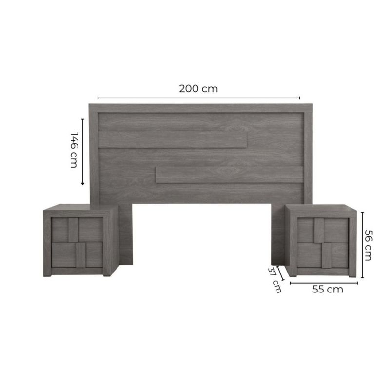 MueblesRecámaraRecámarasRecamara KS 3 Piezas Jazz Gris Kessa Muebles