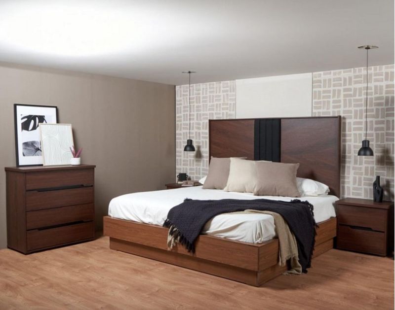 MueblesRecámaraRecámarasRecamara KS 4 Piezas Melory Sin Espejo Nogal y Negro Kessa Muebles