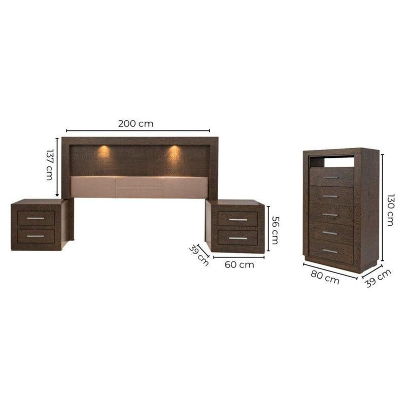 Recamara KS 4 Piezas Pamela Sin Espejo Capuchino Kessa Muebles