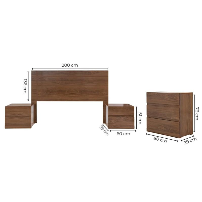 Recamara KS 4 Piezas Valery Sin Espejo Nogal Kessa Muebles