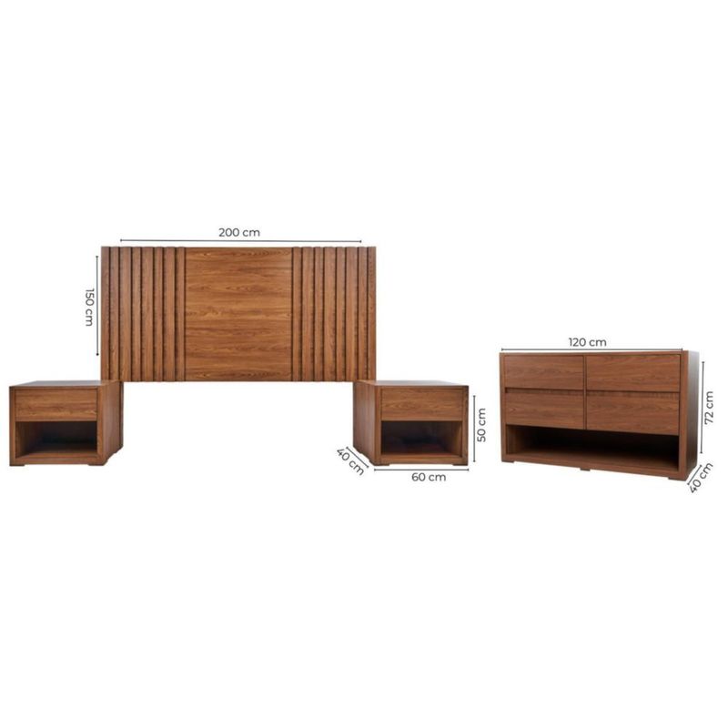 Recamara KS 4 Piezas Vanessa Sin Espejo Nogal Kessa Muebles