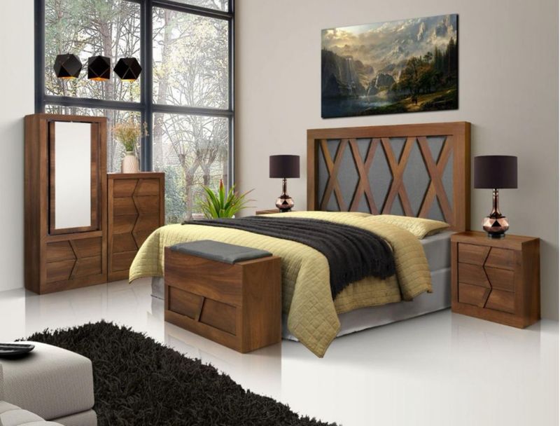 Recamara KS 6 Piezas Briara Parota y Gris Kessa Muebles