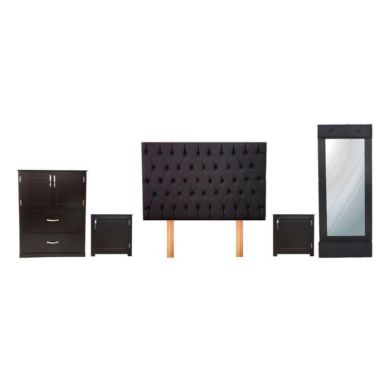 Recámara Matrimonial Capitonada Chocolate 5 Piezas