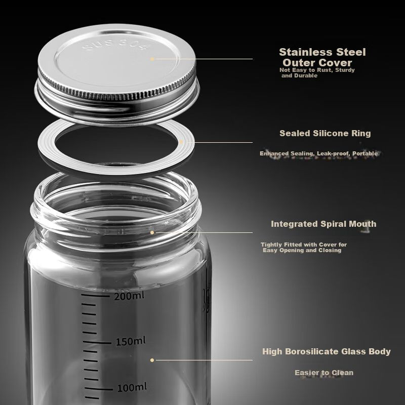 HogarCocinaContenedoresRecipiente Baijie 150 Ml Vidrio Borosilicato Tapa Acero Inoxidable