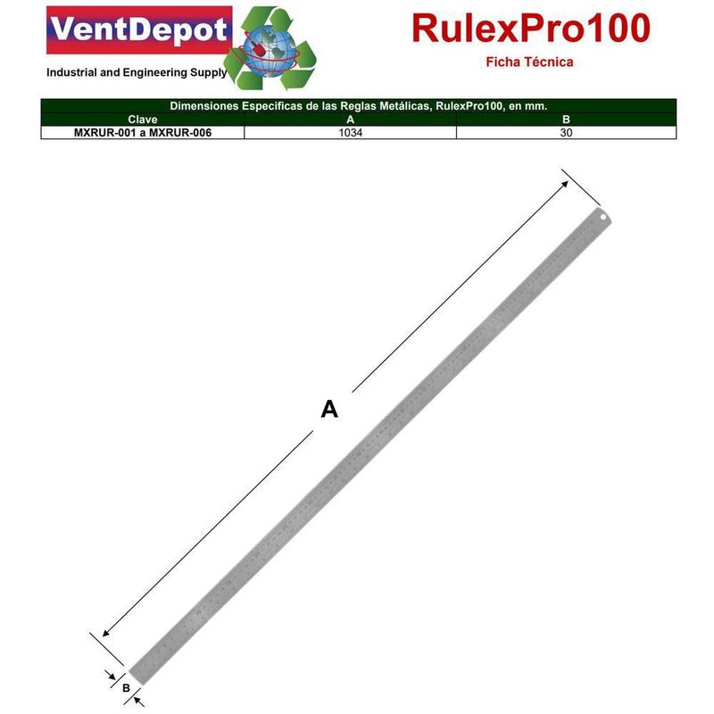 Reglas de Metal MXRUR-002 RulexPro100 Regla Doble Cara
