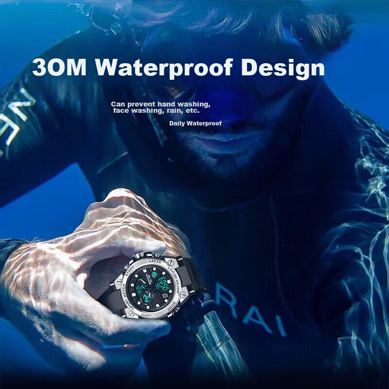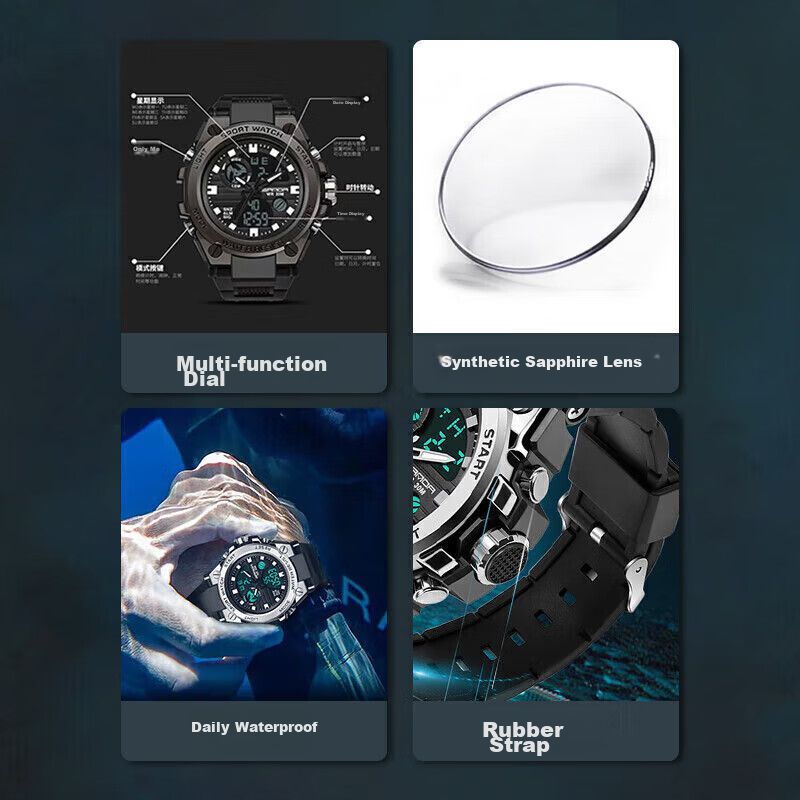 Reloj ABORNI multifuncional deportivo impermeable negro