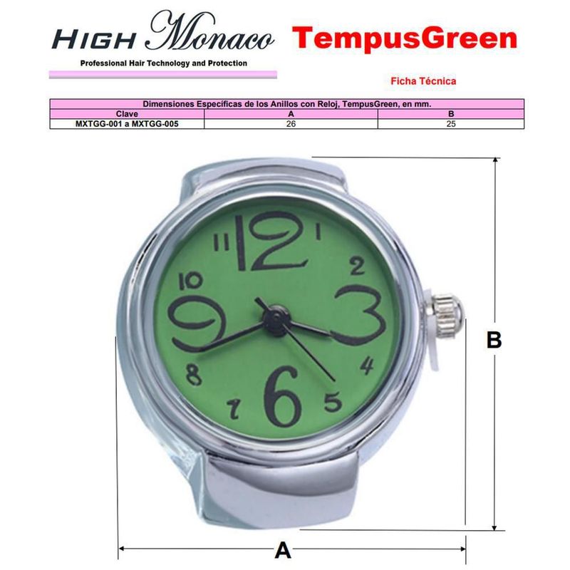 Reloj anillo analógico MXTGG-002 TempusGreen Moda con reloj verde