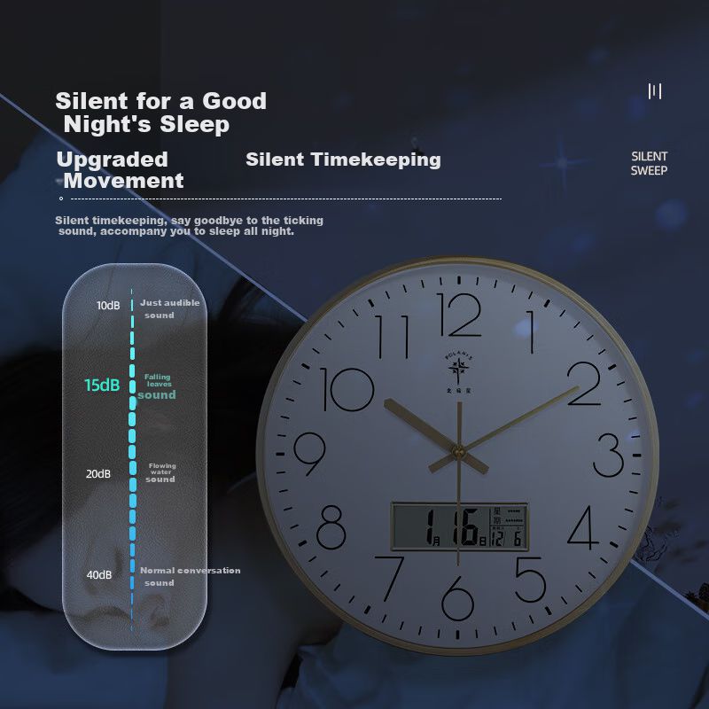 Reloj De Pared Polaris 30 Cm Negro Calendario Termómetro