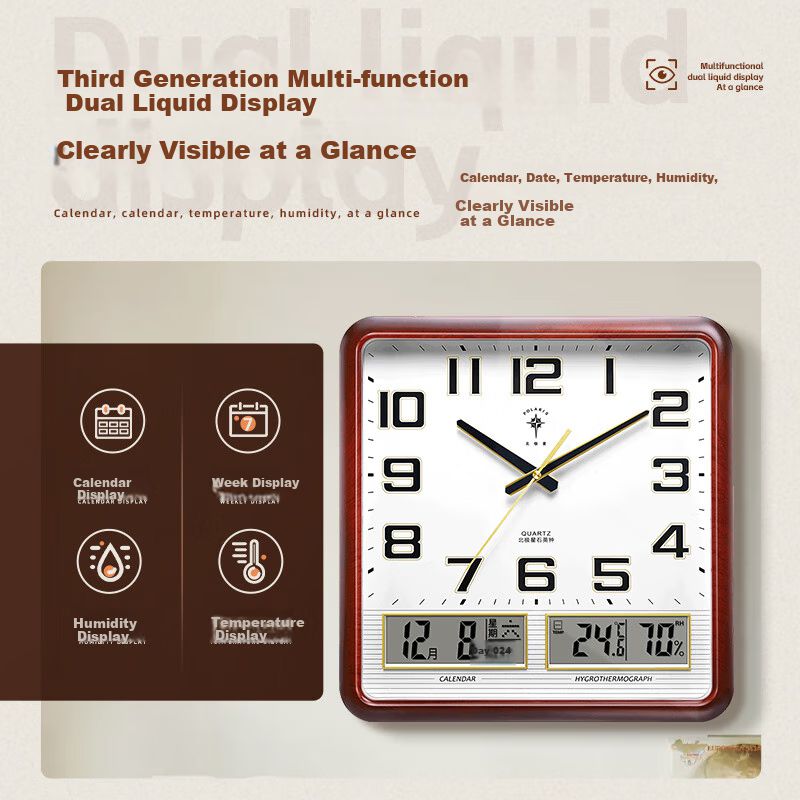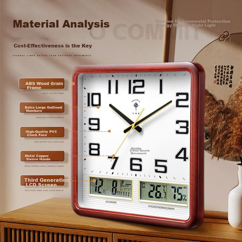 HogarDecoraciónRelojesReloj De Pared Polaris Abs Textura Madera Calendario Termómetro Higrómetro