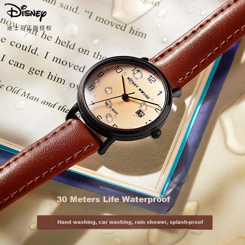 Reloj Disney Mk 11633K Cuadrado Marrón Resistente Al Agua Para Mujer