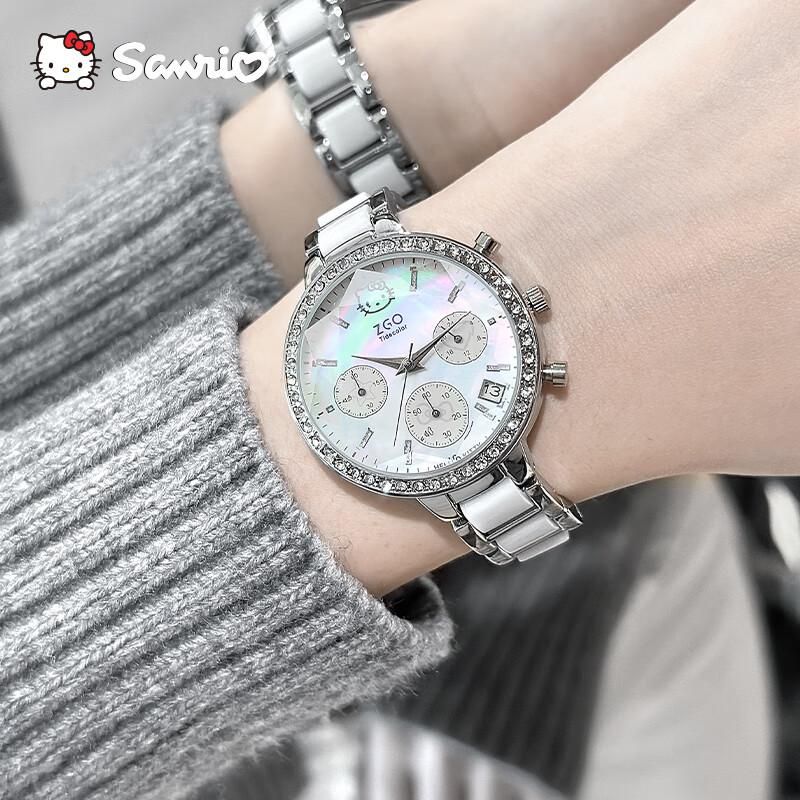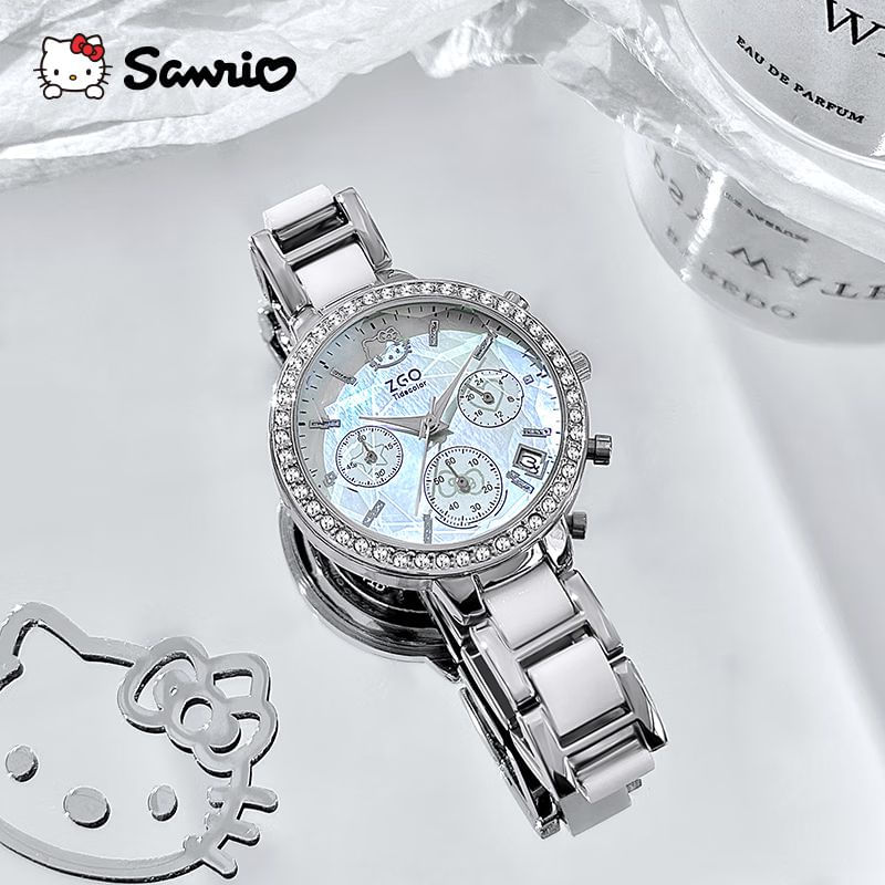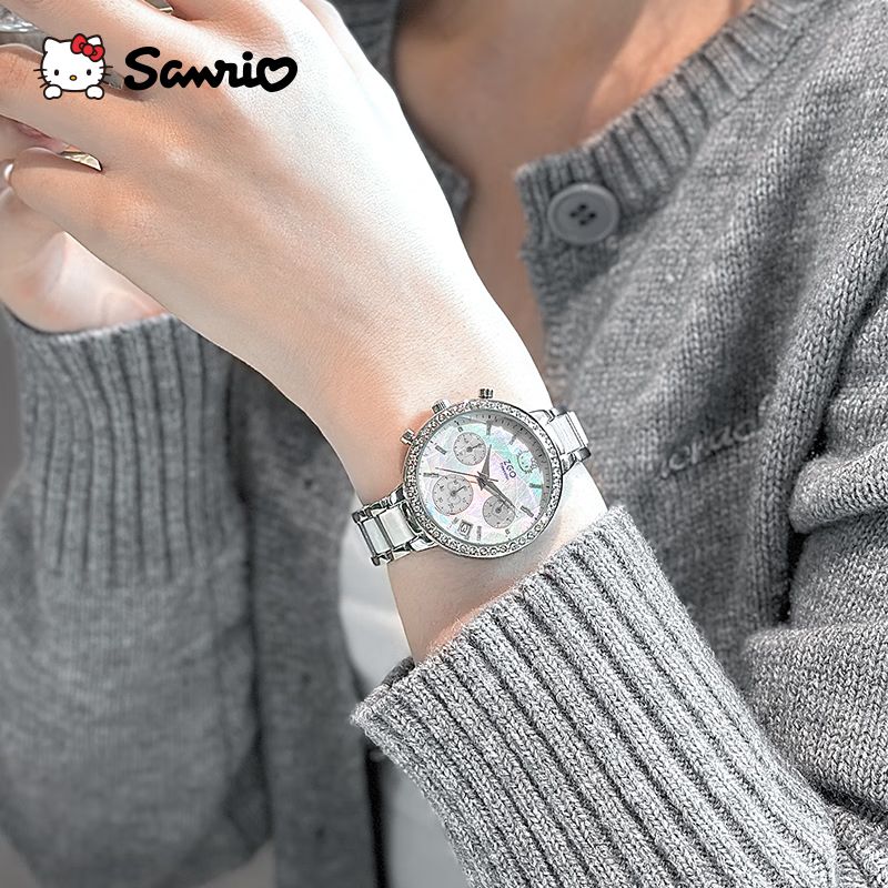 Moda y accesoriosRelojesModaReloj Hello Kitty Luna Blanca para mujer con cronómetro plateado