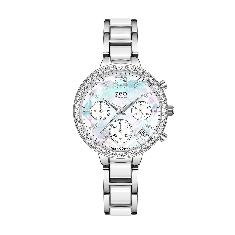 Reloj Hello Kitty Luna Blanca para mujer con cronómetro plateado