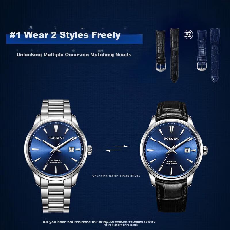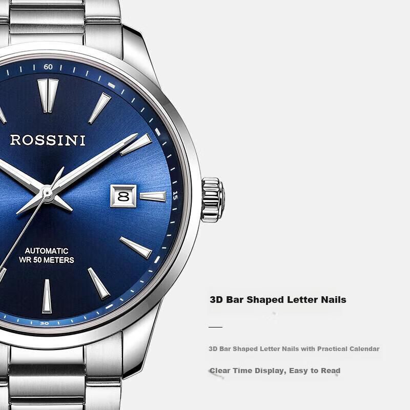 Moda y accesoriosRelojesModaReloj ROSSINI mecánico hombre esfera azul correa acero 519935