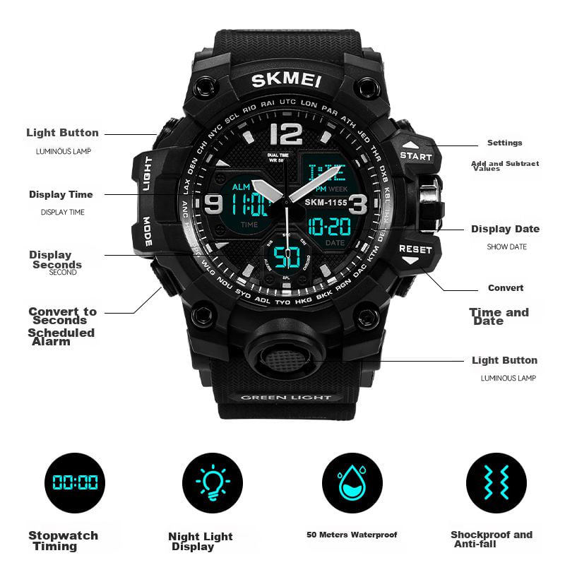 Reloj Skmei 1155B impermeable negro