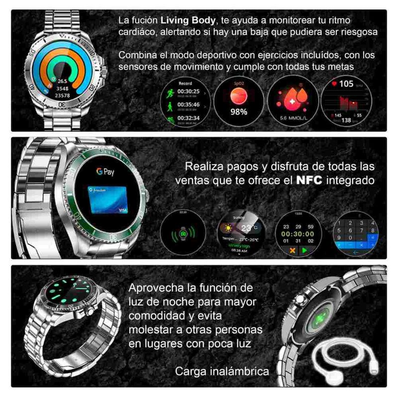 Reloj Smartwatch VAK C1 ACERO SUBMARINE NFC CRISTAL Plateado