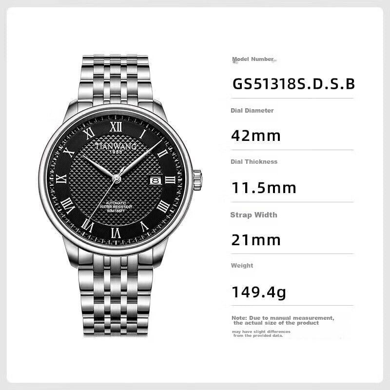 Reloj TIAN WANG GS51318S.D.S.B mecánico acero inoxidable esfera negra