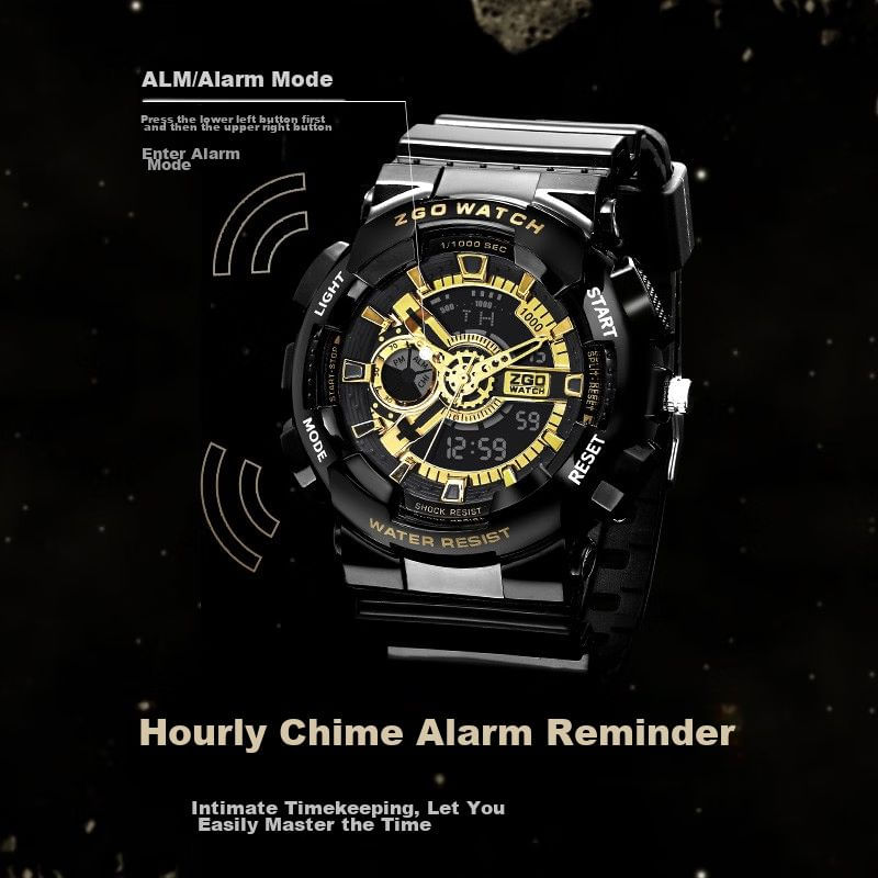Reloj ZGO ZG-851 deportivo impermeable negro y oro