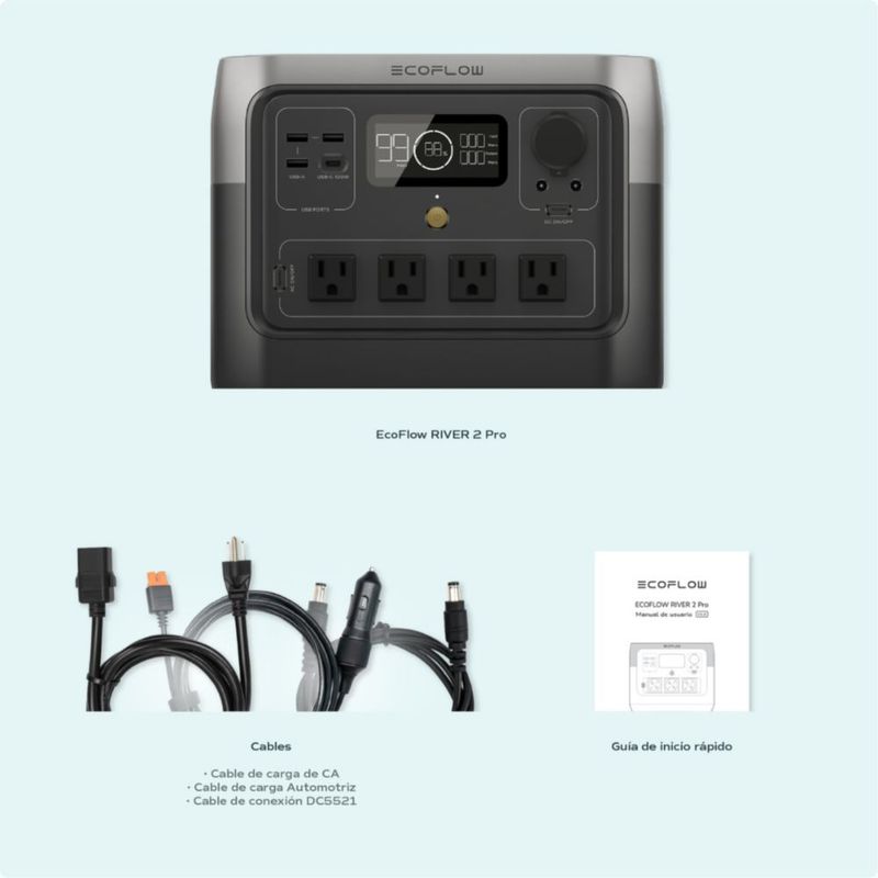 River 2 Pro Ecoflow- Estación de Energía Portátil 800W/768Wh, Carga en 70 Minutos, Compatible con Paneles Solares, Ideal para Viajes y Camping