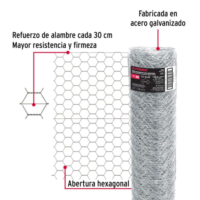 HogarPatio y JardínJardinería y AccesoriosRollo Malla Hexagonal 1.5x45 M Cal.20 50mm 44662 Fiero