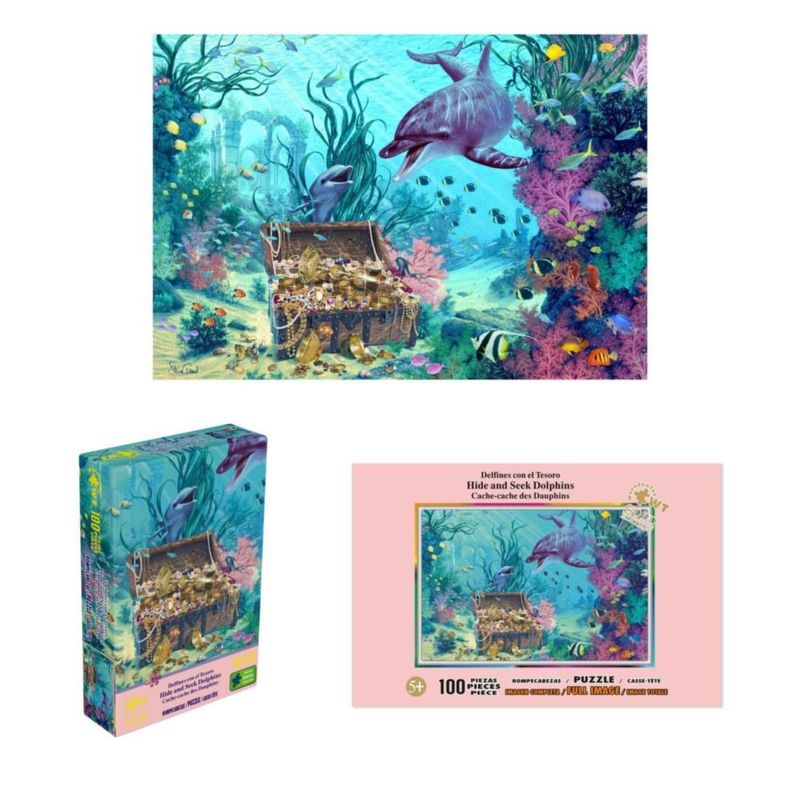 Rompecabezas Gold Edition 100 Pzs, Delfines con el Tesoro