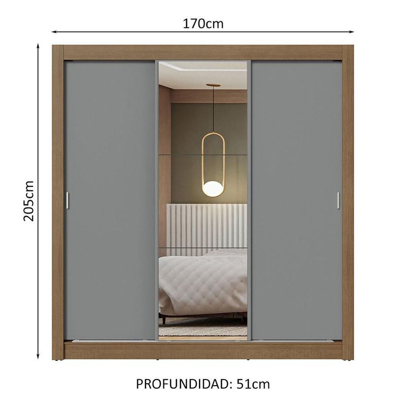 Ropero Closet 3 Puertas 1 Espejo Marrón/Gris Madesa