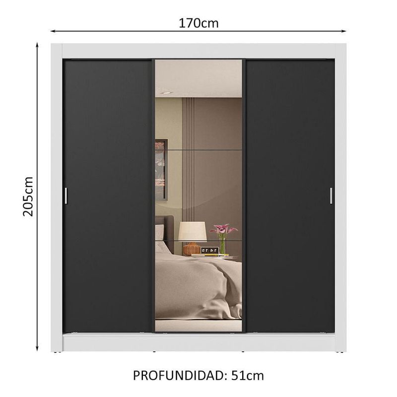 Ropero Closet Madesa 3 Puertas 1 Espejo BN 02