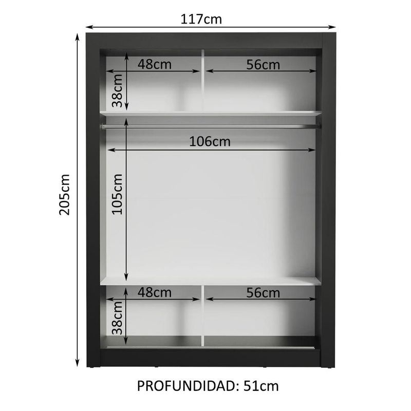 Ropero Closet Madesa Dallas 2 Puertas Con Espejos Negro 2