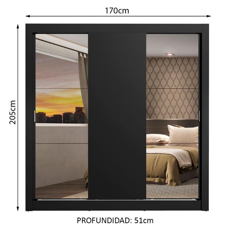 Ropero Closet Madesa Mônaco 3 Puertas 2 Espejos Negro 11