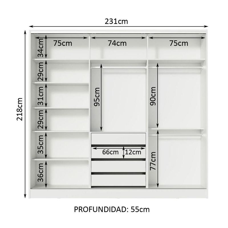 Ropero Closet Madesa Royale 3 Puertas 1 Espejo Blanco 1