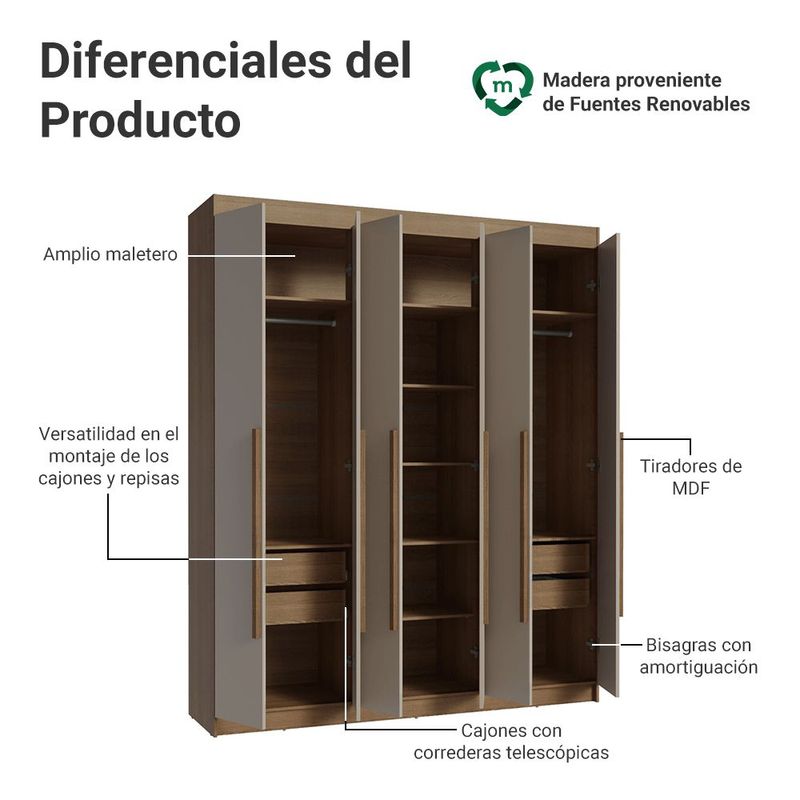 Ropero Closet Madesa Venus 6 Puertas 180cm Marrón/Crema 1