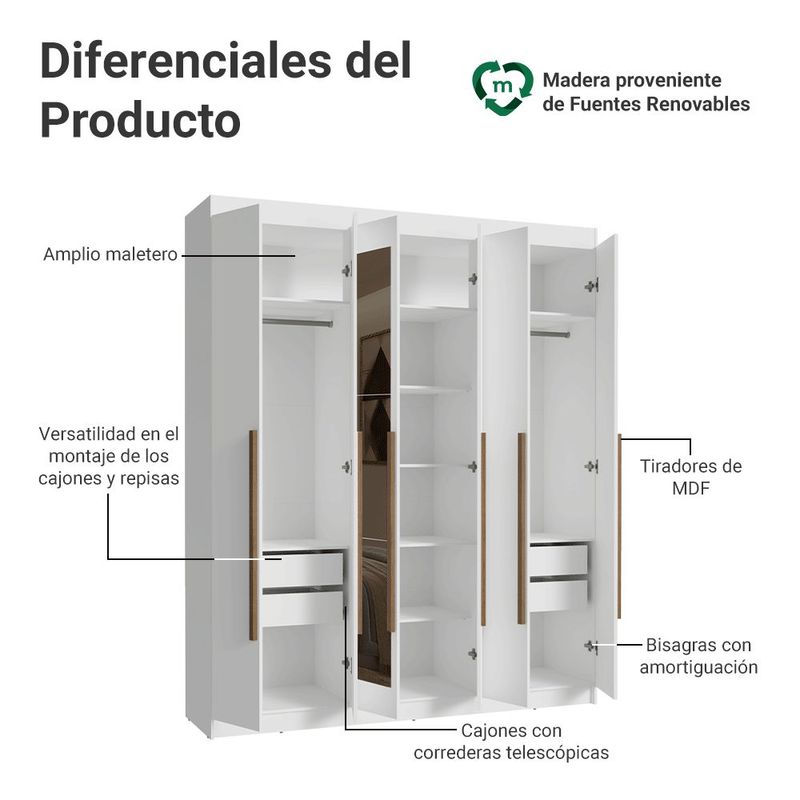 Ropero Closet Madesa Venus 6 Puertas 2 Espejos 180cm BB 03