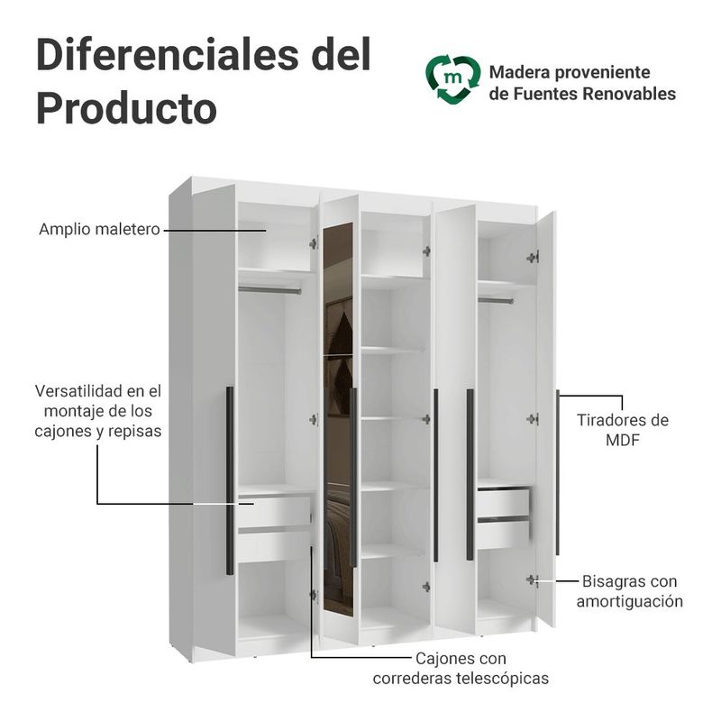 Ropero Closet Madesa Venus 6 Puertas 2 Espejos 180cm BB 07