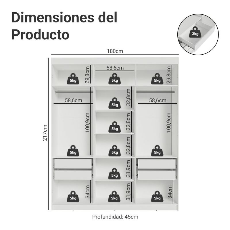 MueblesRecámaraClosets y ArmariosRopero Closet Madesa Venus Con 4 Cajones 180cm Blanco