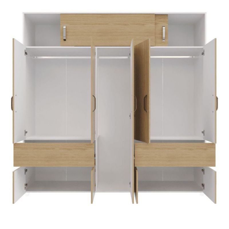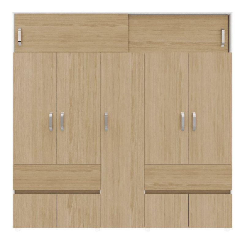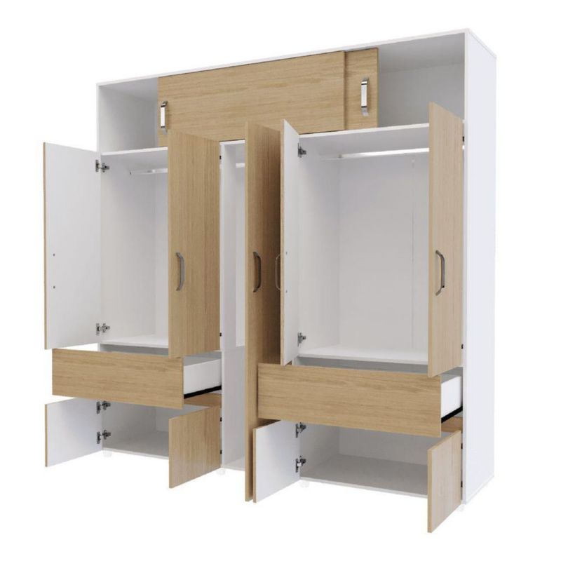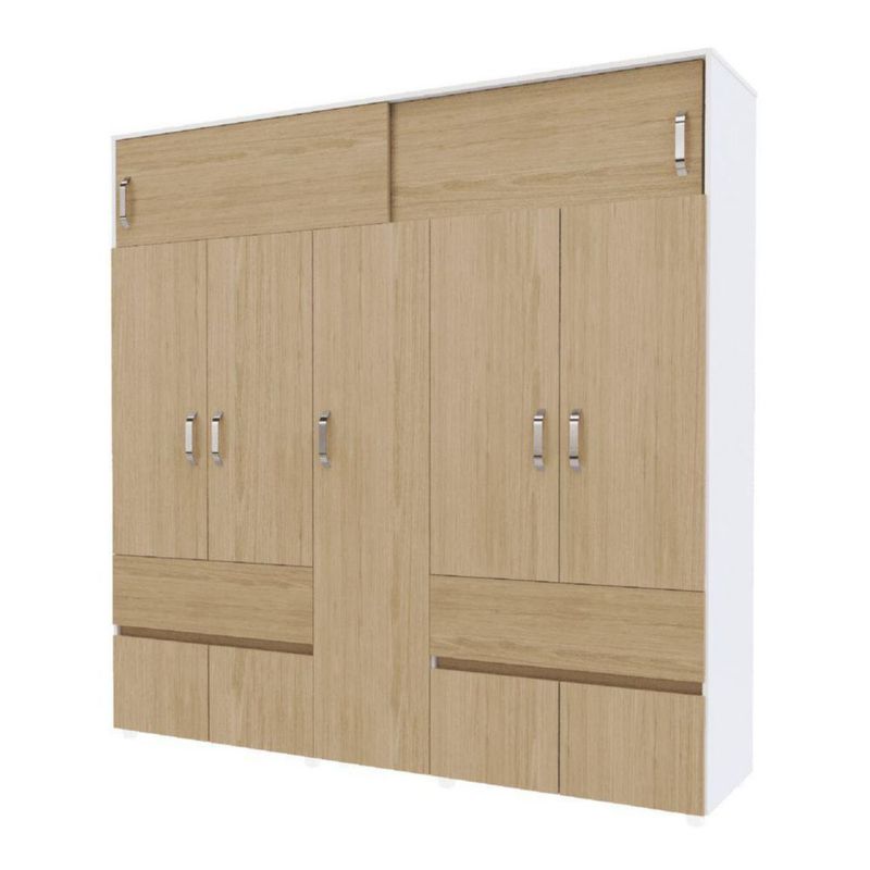 Ropero Maderkit Bari 200 cm 9 Puertas 2 Cajones 2 Tubos Maletero Color Rovere Blanco