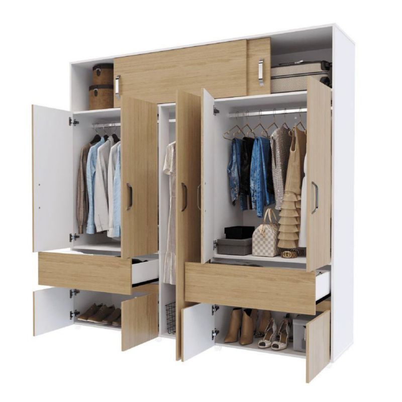 MueblesRecámaraClosets y ArmariosRopero Maderkit Bari 200 cm 9 Puertas 2 Cajones 2 Tubos Maletero Color Rovere Blanco