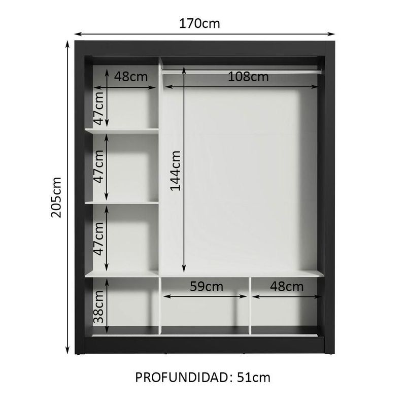 Ropero Madesa Monaco 3 Puertas Corredizas Negro