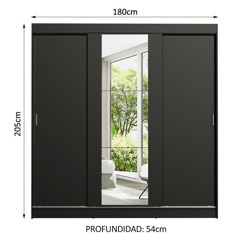 Ropero Madesa Reno 3 Puertas Corredizas con 1 Espejo Negro